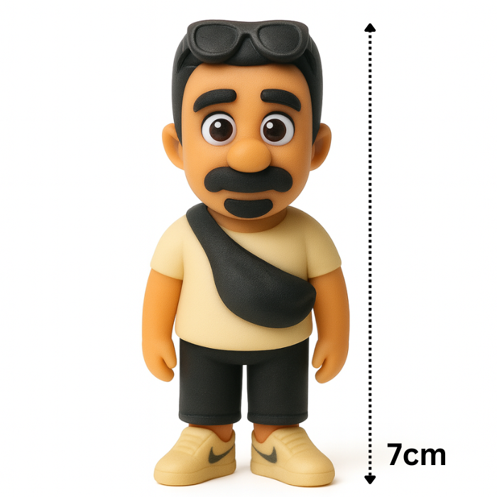 Nos figurines personnalisées mesurent 7cm mais nous pouvons ajuster la taille. Pour cela contactez nous par mail.