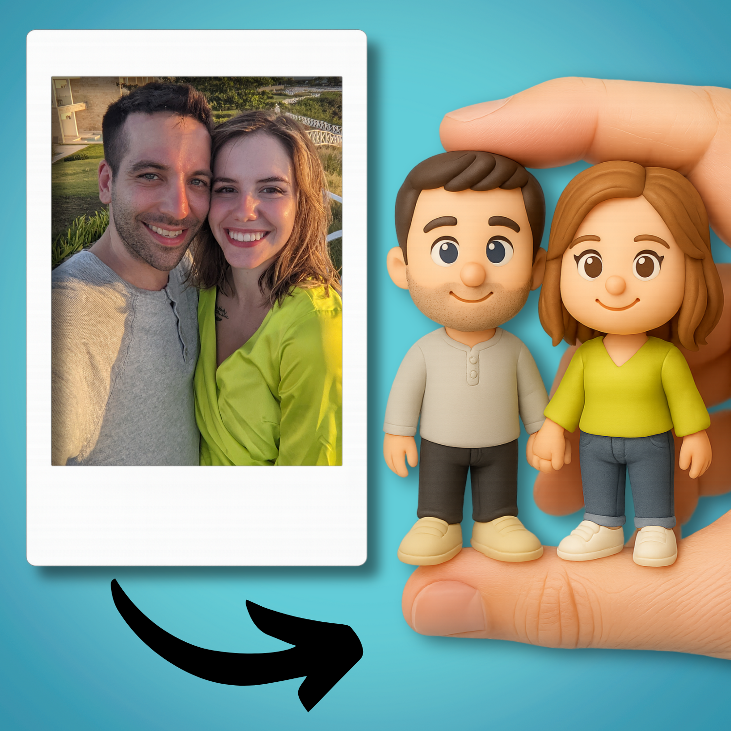 Chaque figurine est créée spécialement pour vous, de la pose à la tenue, en passant par les expressions faciales. Aucune création n'est identique.